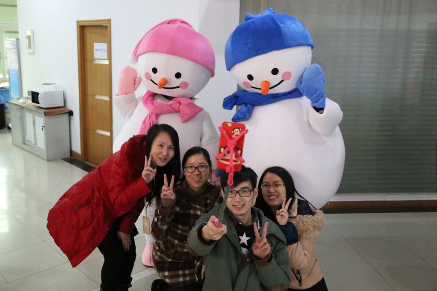 12月25日,兩個超萌巨型雪人公仔空降公貿大樓,為國貿、海外、電商等事業部的同事們送上圣誕節的驚喜,兩位小萌所到之處都能吸引無數粉絲尖叫、合影。 本次活動一共為大家準備了5種可選禮品包括健康禮、舌尖禮、暖心禮、家居禮、甜心禮,每位同事都通過刮獎的方式獲得了公司為他們送上的圣誕驚喜。
