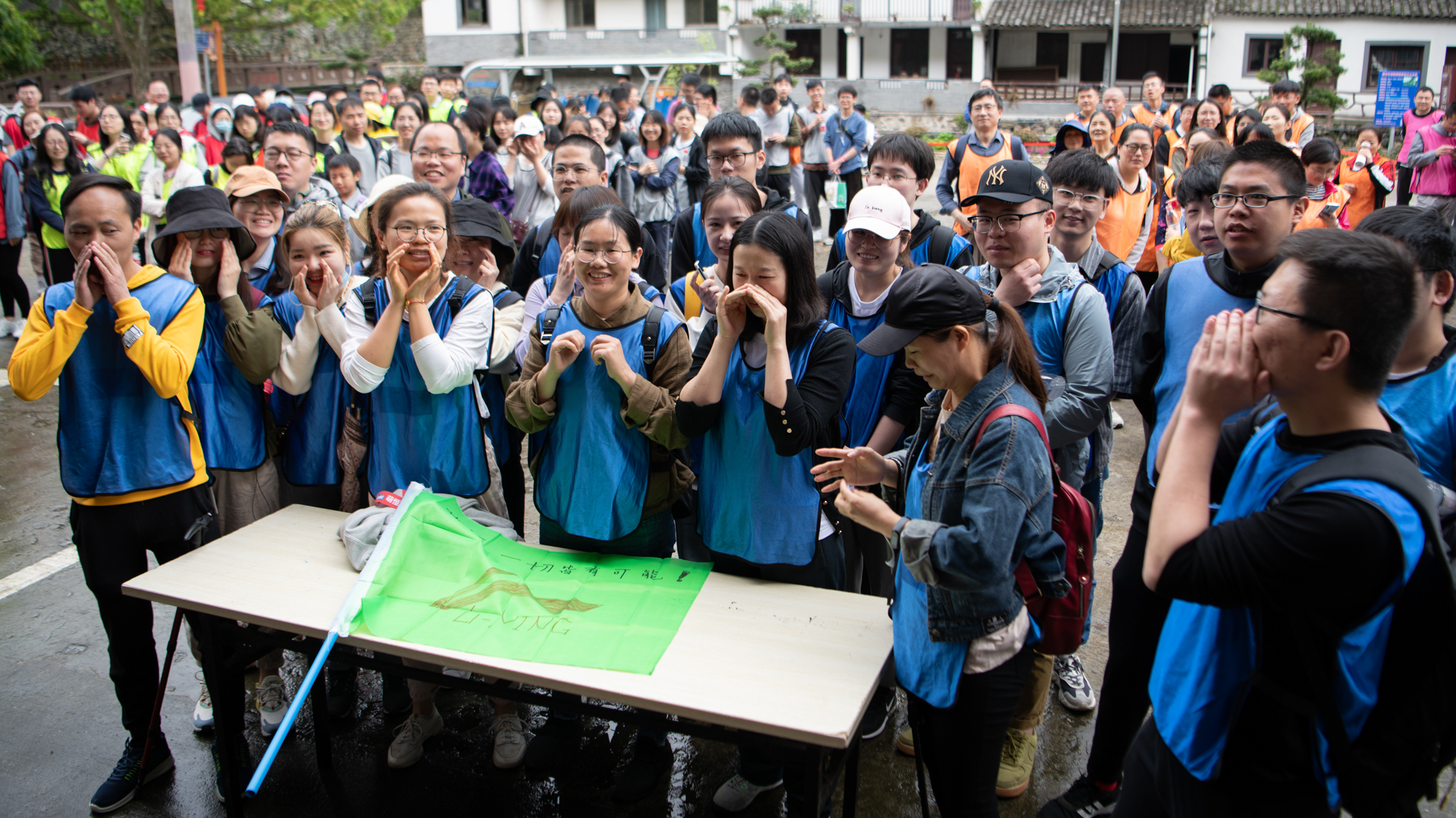 4月24日,150余位國貿員工也作為春季徒步團建的第一批隊,踏上綠意森森的塘溪風車公路,走過歲月沉淀的古村鄉落。 火箭隊、紅一隊、國家隊、雄鷹隊、旺旺隊、李寧隊,自己取的名字,總是叫得格外響亮有沖勁。隊伍還沒出發,各隊就在集合點開啟了第一場團隊battle,全員齊喊隊名口號,分貝爆表。 考慮到身體素質因人而異,這次徒步團建不以速度取勝,全員可盡情享受鄉間美好~ 前一天雨水剛過,山間野路難免有些濕滑,好在大家人多勁足,半分沒被山路拖慢腳步,相互拉扯一把,就熱熱鬧鬧地上了山頂。 白云驛站景如其名,視野開闊,頭頂藍天白云、與綠意融為一體。旁邊還有一座古廟,靜心環繞一周,似乎也感受到了幾分以清凈心看世界,以歡喜心過生活的禪意。   下山一路疾走,難免有些無趣,雖不計徒步速度,隊伍與隊伍之間也是摩拳擦掌,躍躍欲試地想要決出個高低。一圈到底、平衡方塊、神筆馬良……簡單有趣的小游戲,調動著每一位同事的積極性和主動性,游戲中大家熱烈討論,合力動腦,通過團隊的溝通協作能力執行及領導力,這些在真實工作中都是必然出現的,透過游戲我們體驗了合作和互相支持的快感。     這場徒步團建中,不僅體會相互支持的力量,信任與被信任的關系,體驗協調能力和合作精神,還希望大家都能健康生活、快樂工作。人生就像一場徒步旅行,要相信每一步的力量,一步一步丈量這個世界。