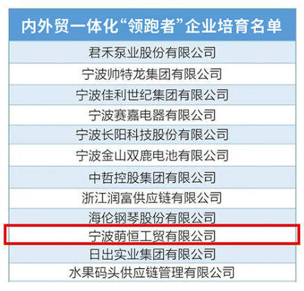 近日,浙江省商務廳公布第七批內外貿一體化“領跑者”企業(yè)和內外貿一體化典型案例名單。其中,寧波萌恒工貿有限公司成功入圍名單。