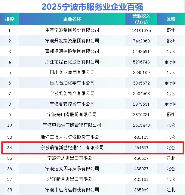 2025寧波企業百強榜發布,萌恒蟬聯雙榜!